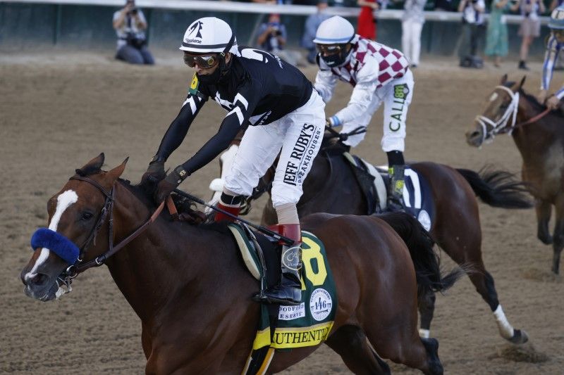 Under Manny Franco, Tiz the Law briefly stuck his head in front, only to have Authentic fight right back and spurt clear of the Belmont winner, who came in 4-for-4 this year.