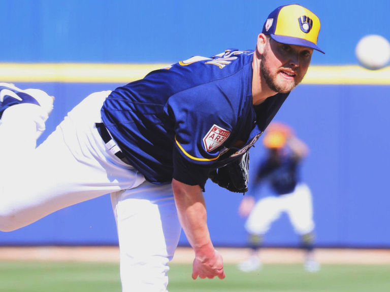The Milwaukee Brewers right-hander injured his pitching shoulder while running the bases during a game against the Chicago Cubs on Sept. 8, 2017.