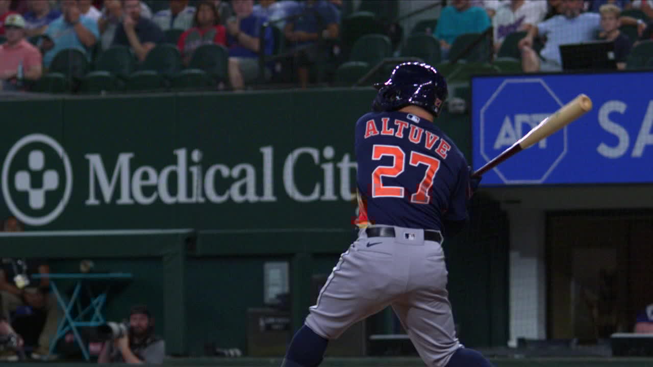 Altuve started the game with a blast to left off Rangers starter Nathan Eovaldi, who was making his first appearance since July 18 because of a forearm strain.
