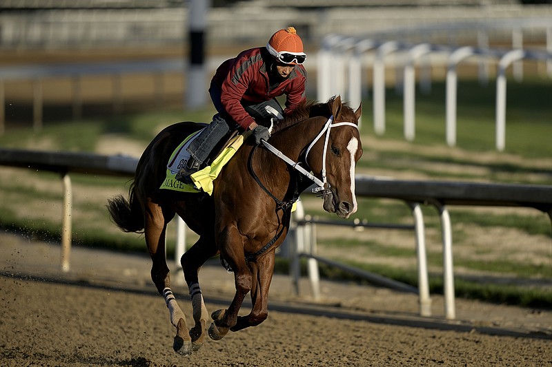 Mage galloped about 1½ miles at a brisk pace with exercise rider J.J. Delgado aboard on a cloudy but mild Friday morning at the track. Co-owner and bloodstock agent Ramiro Restrepo stated the chestnut colt was “thriving” with good energy levels after his latest training session since winning the 149th Derby, paving the way for the horse to enter the Triple Crown’s second jewel at Pimlico in Baltimore.