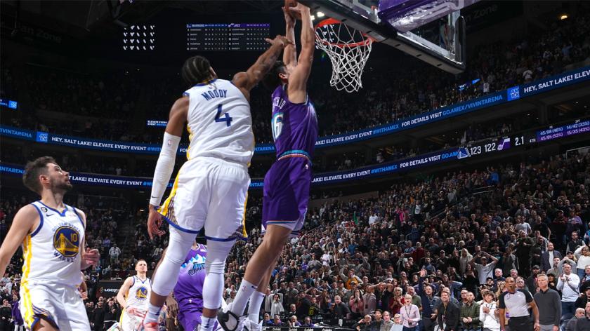 With 13 seconds left, Kelly Olynyk inbounded the ball to Nickeil Alexander-Walker, who worked his way around Moses Moody and drove to the hoop for what looked to be a wide-open layup.